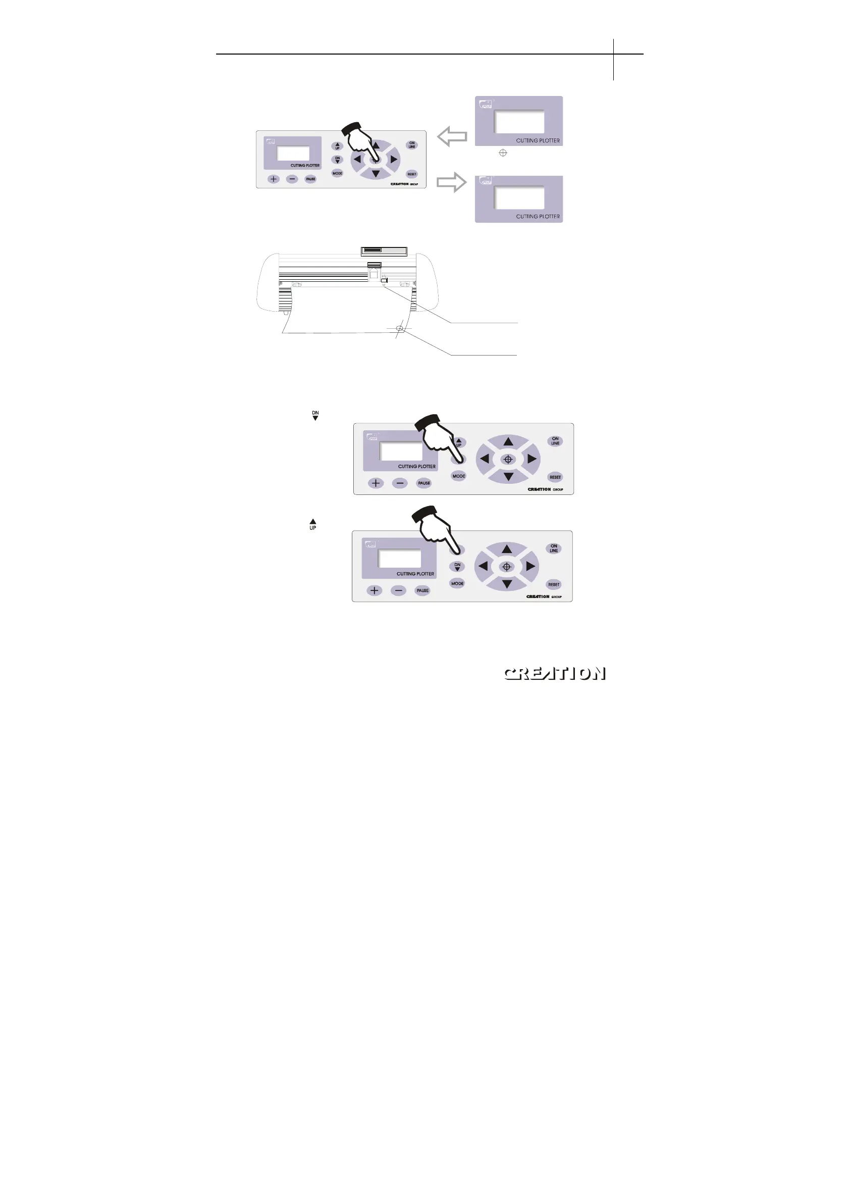 While in off-line state, press DN button, the knife will fall, then press UP button to raise