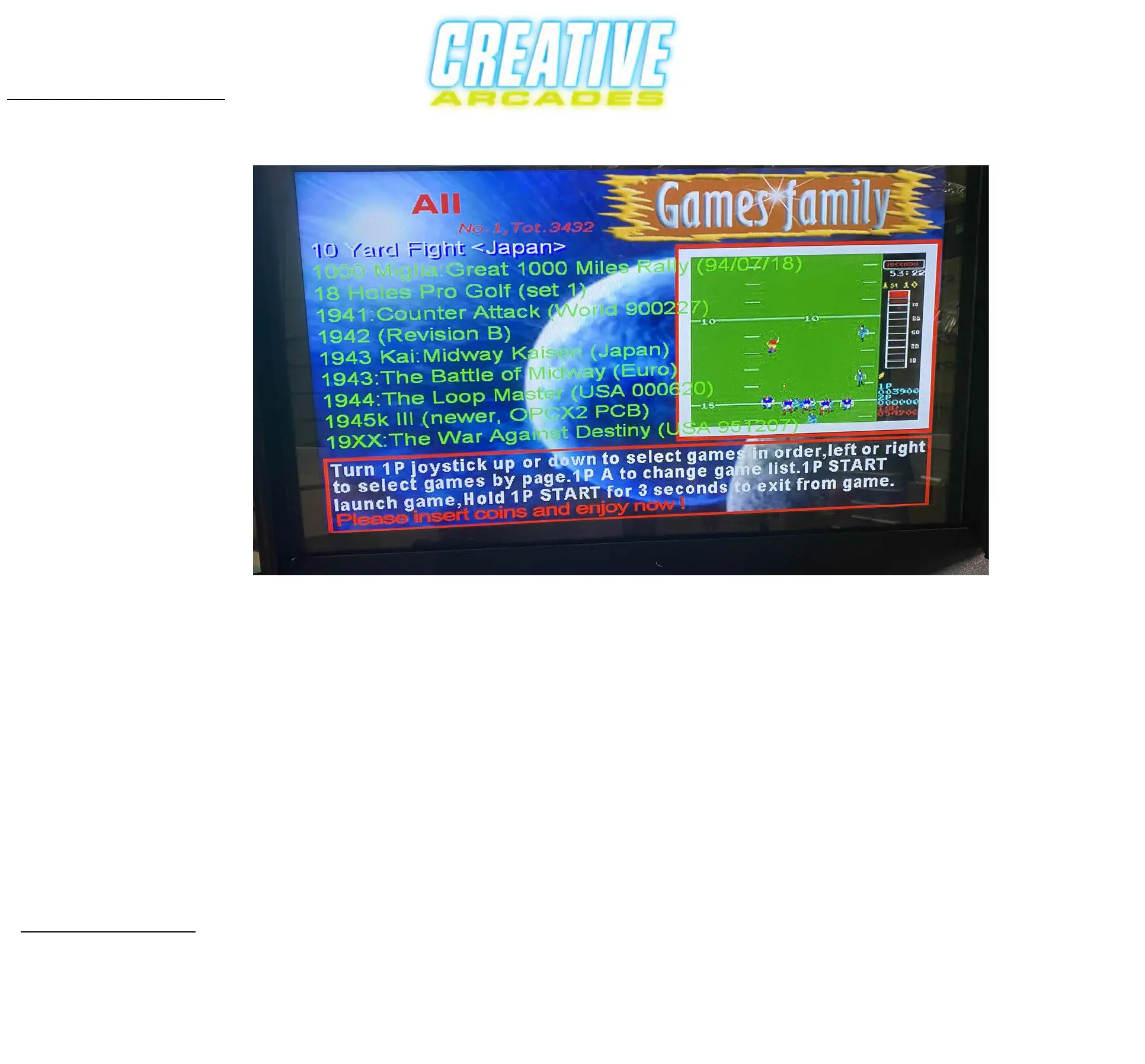 Once you find a game that you would like to play, push the Player1_a button to load that game.