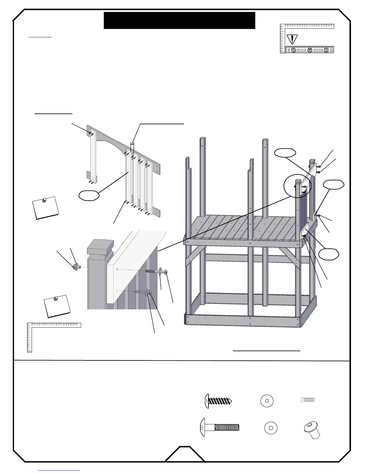 * From the inside deck, attach one WD24 to the left of the arch with wood screws "a3".