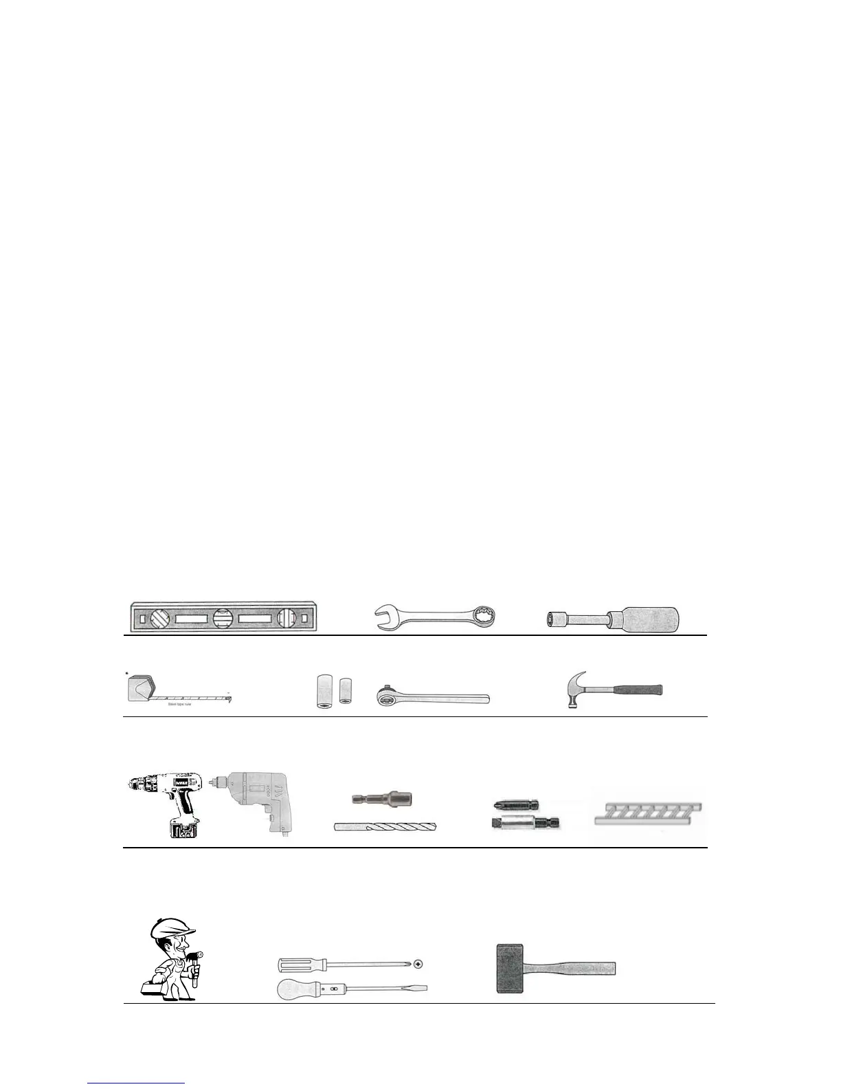 (These are the tools that are generally required for assembly of our playsets. These tools are not included in the playset purchase.)