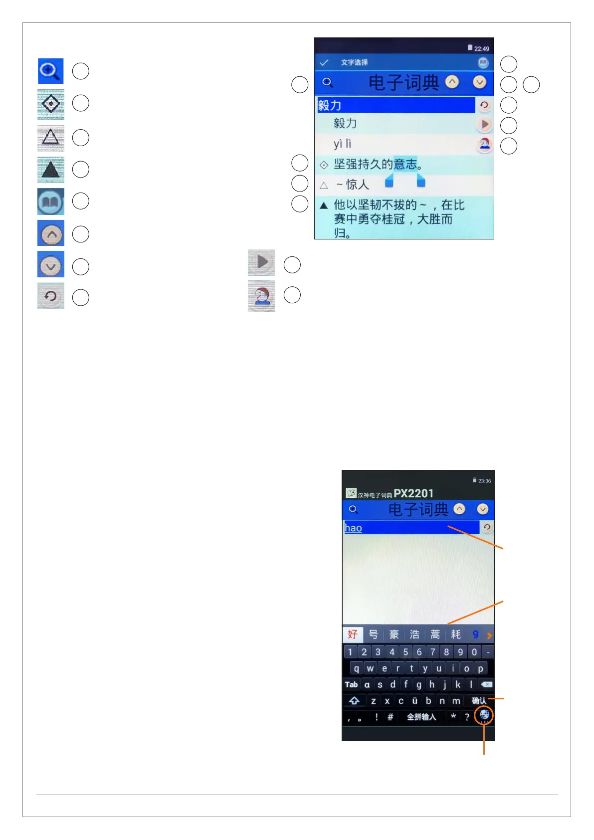 1. Input by Pinyin 2. Input by Bushou 3. Handwritten Input / Input by Stylus