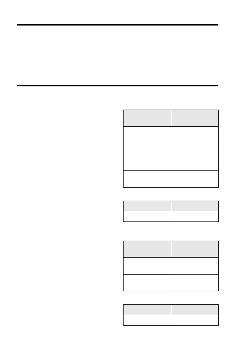 The following tables list the possible default