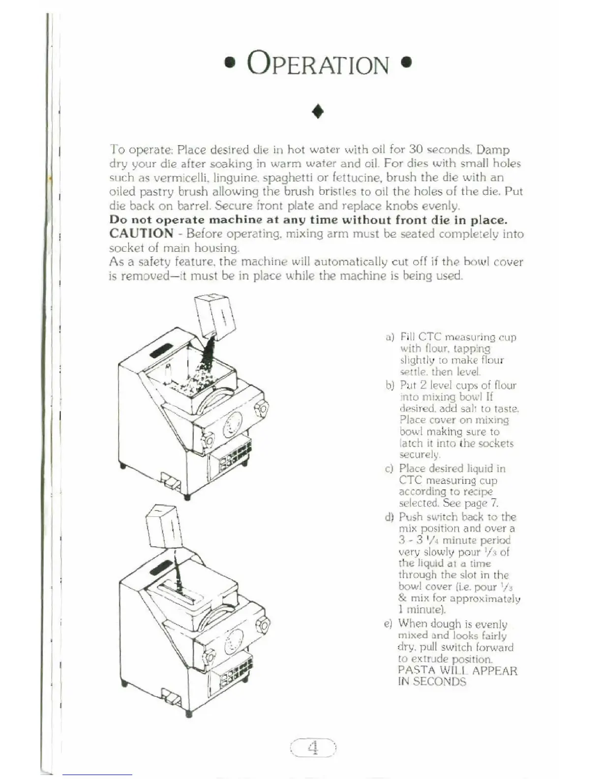 Creative Technologies Pasta Express X3000 - OPERATION; Operating the Pasta Machine