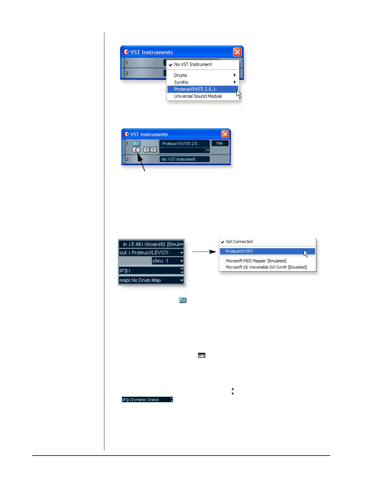 4. From the VST Instruments window, select E-MU, then ProteusVXVSTi.