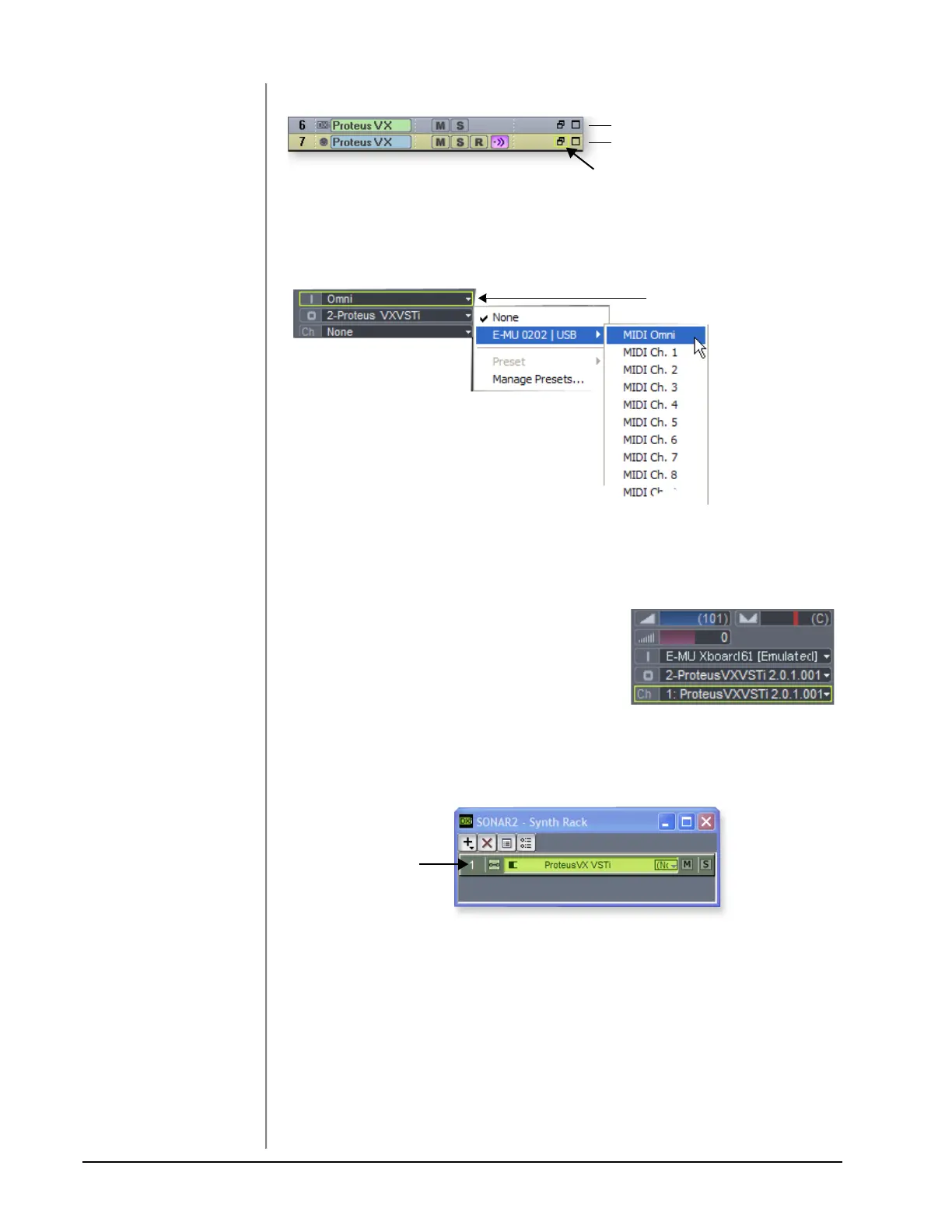 mode as shown above. “MIDI Omni” allows Proteus VX VSTi to receive on all