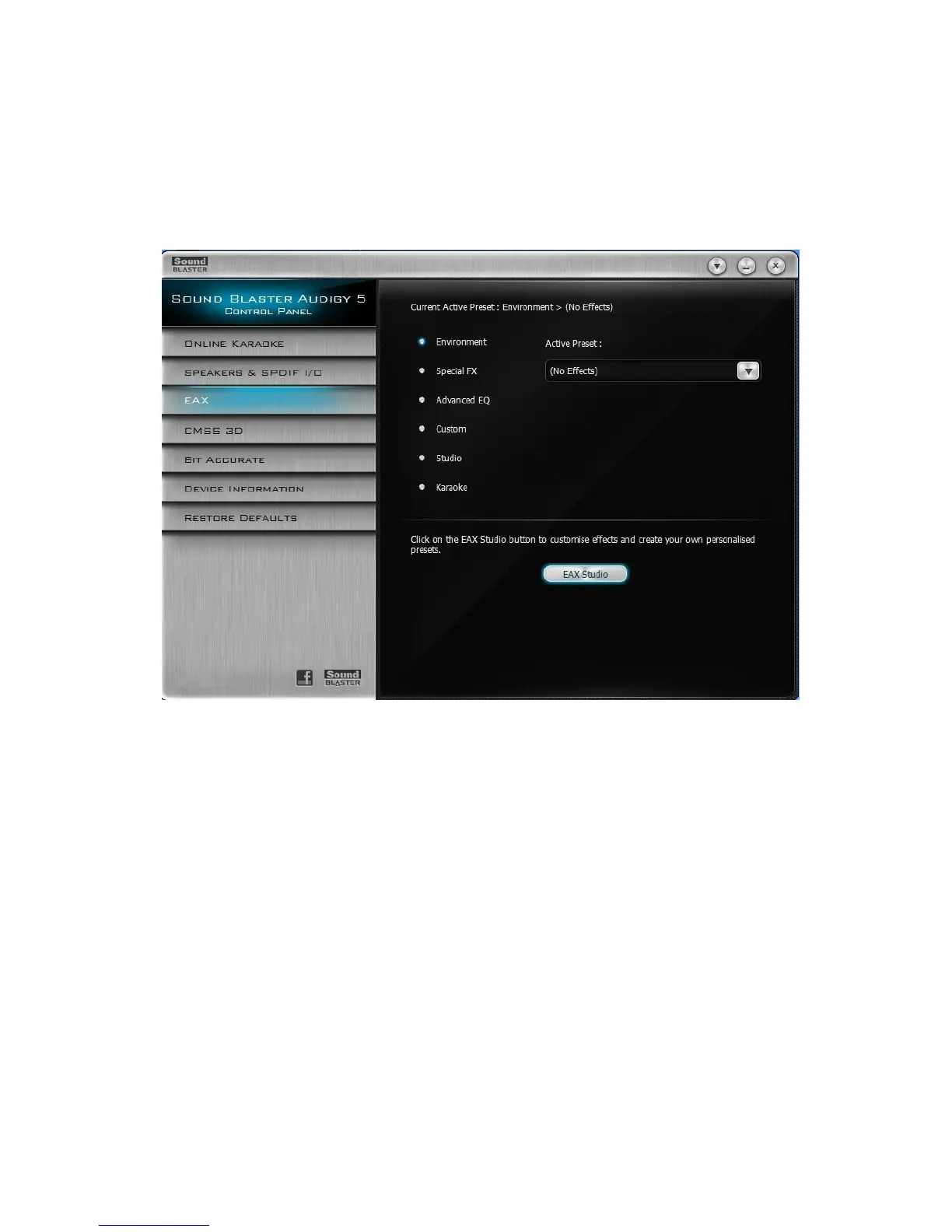 4. Click the EAX Studio button to launch Sound Blaster Audigy 5 EAX Studio and consequently cus-
