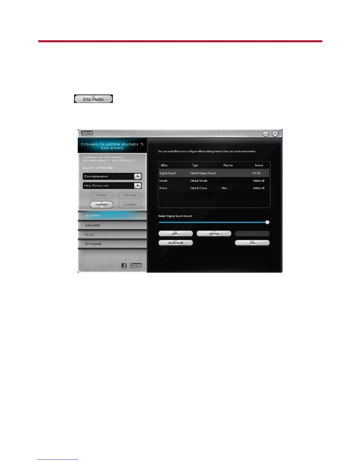 By default, theSound Blaster Audigy 5 EAX Studio opens to its Master tab.