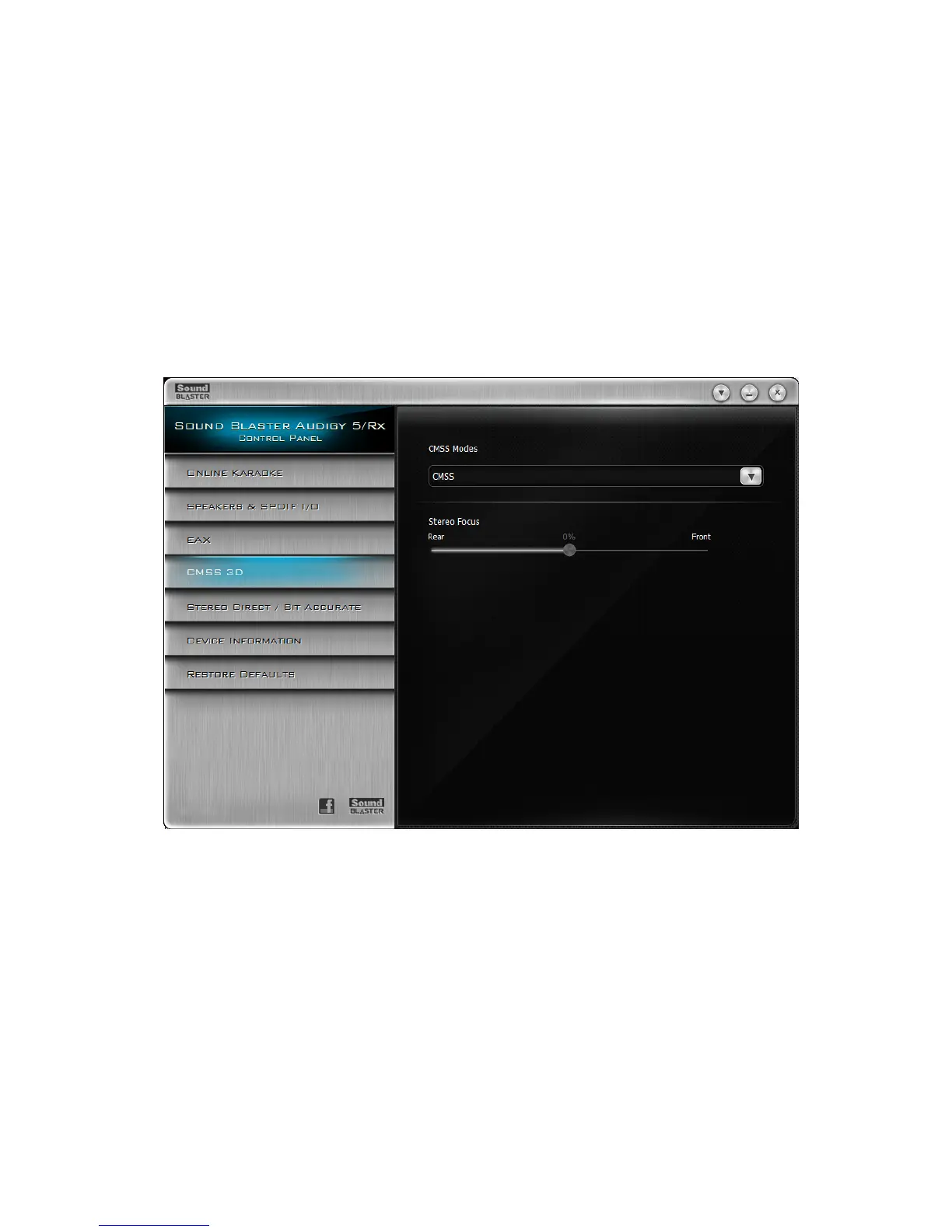 3. Drag the Stereo Focus slider to position sound to the front or rear of your speaker system.