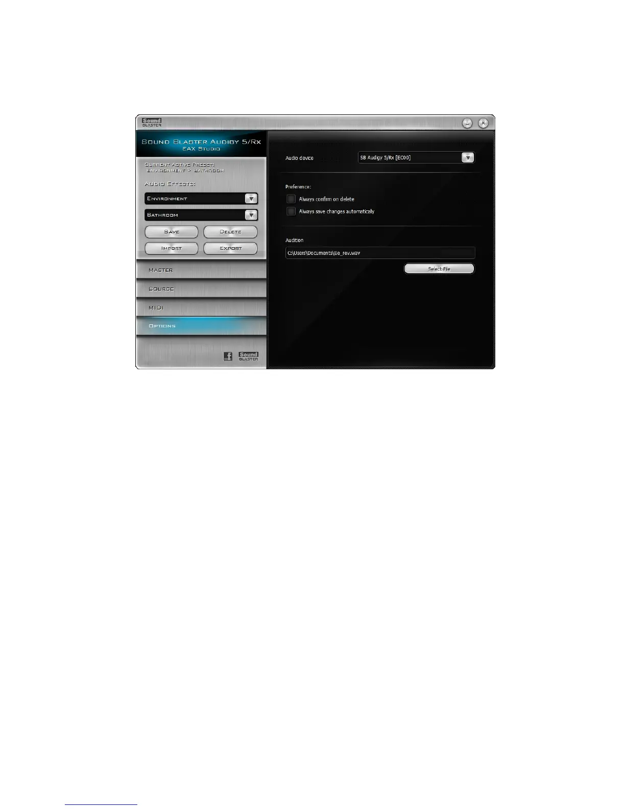 1. On Sound Blaster Audigy 5/Rx EAX Studio, click the Options tab.