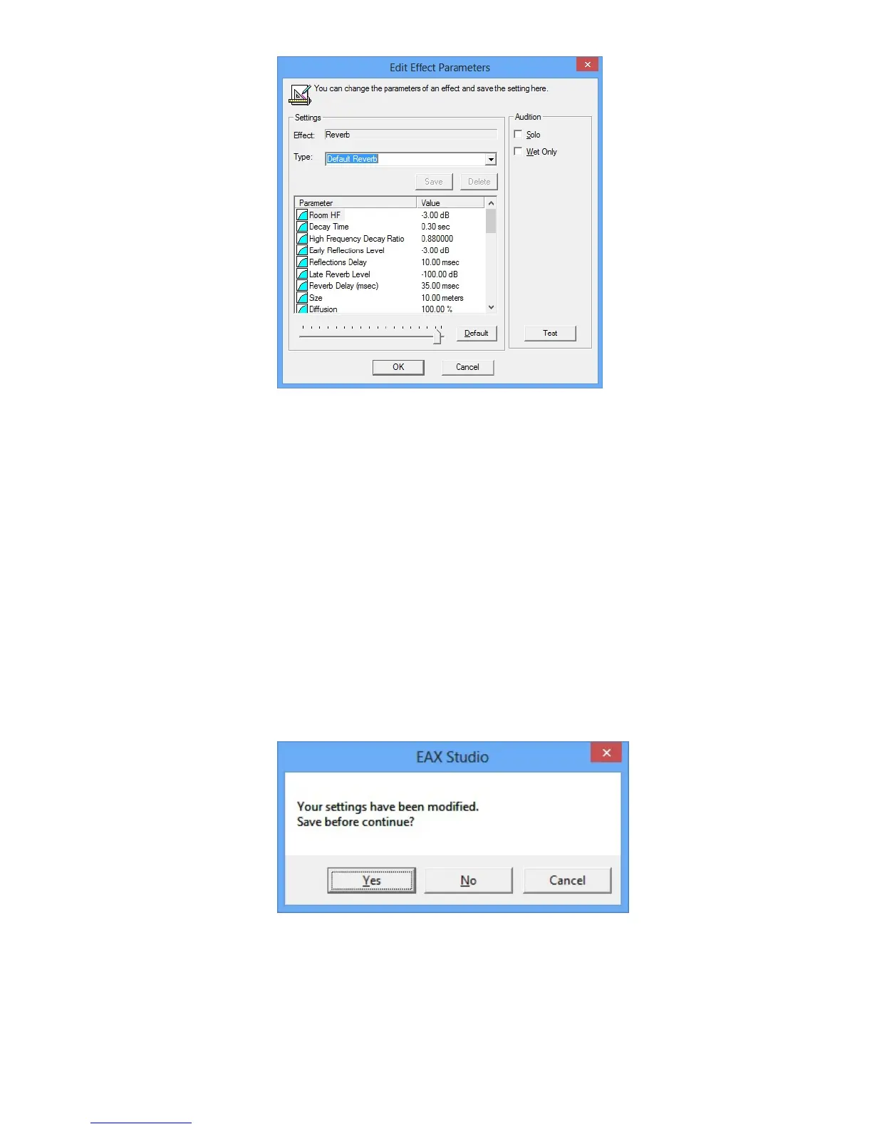 l When exiting from Sound Blaster Audigy 5/Rx EAX Studio, the EAX Studio dialog box appears.