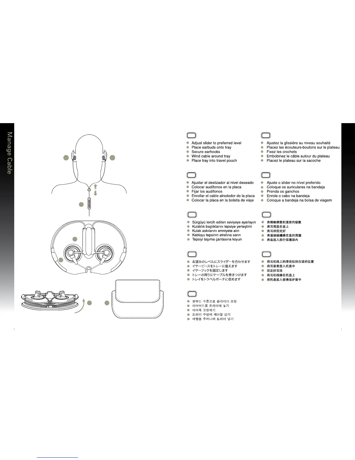 Creative Aurvana Air - Manage Cable; Cable Slider Adjustment; Cable Storage