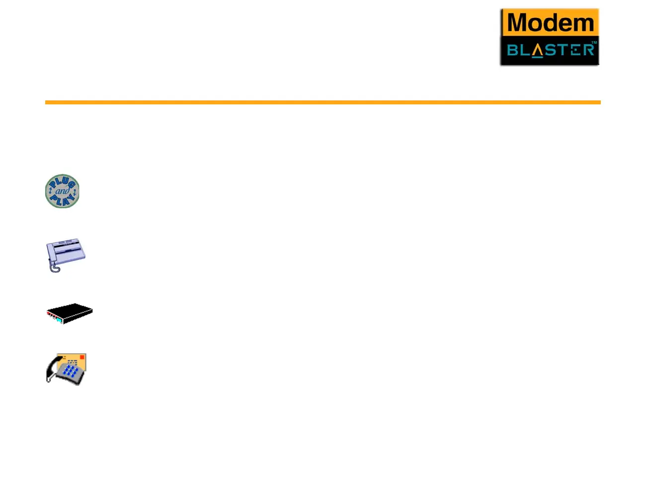 Besides transferring data and accessing online information, your Creative Modem Blaster has the