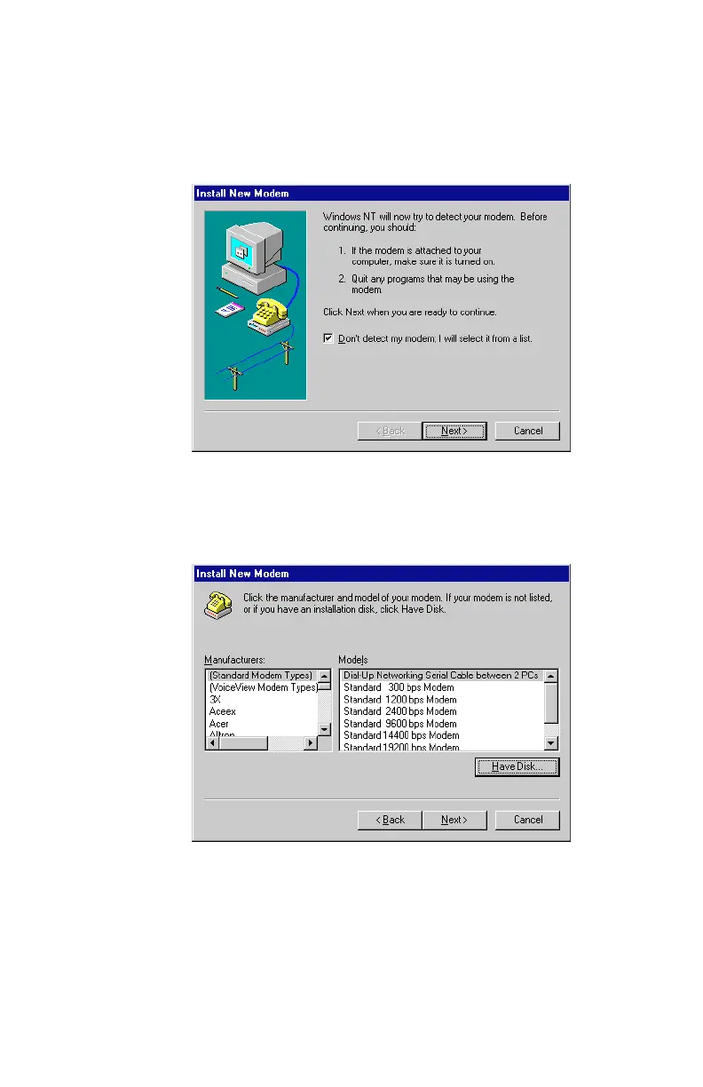 appear. Select the “Don’t detect my modem; I will select it