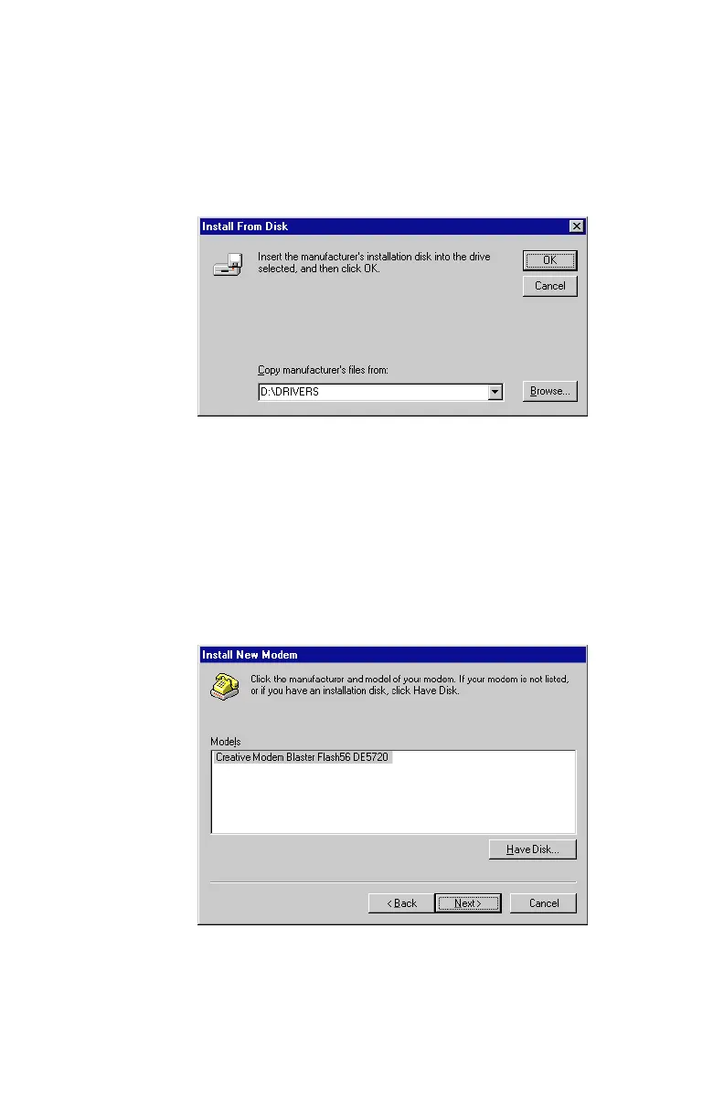 Figure 2-26: Browse to locate the correct modem driver on supplied CD-ROM
