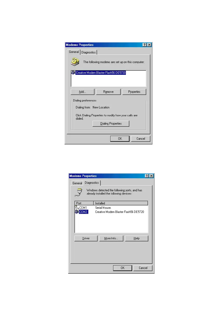 Figure 2-33: Modem is confirmed installed via ‘Modem Properties’ dialog box