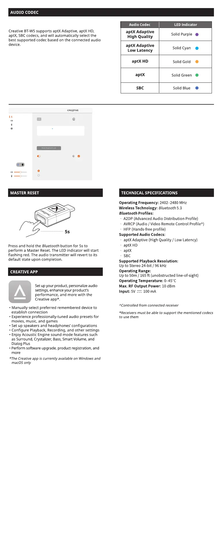 Creative BT-W5 supports both aptX Adaptive High