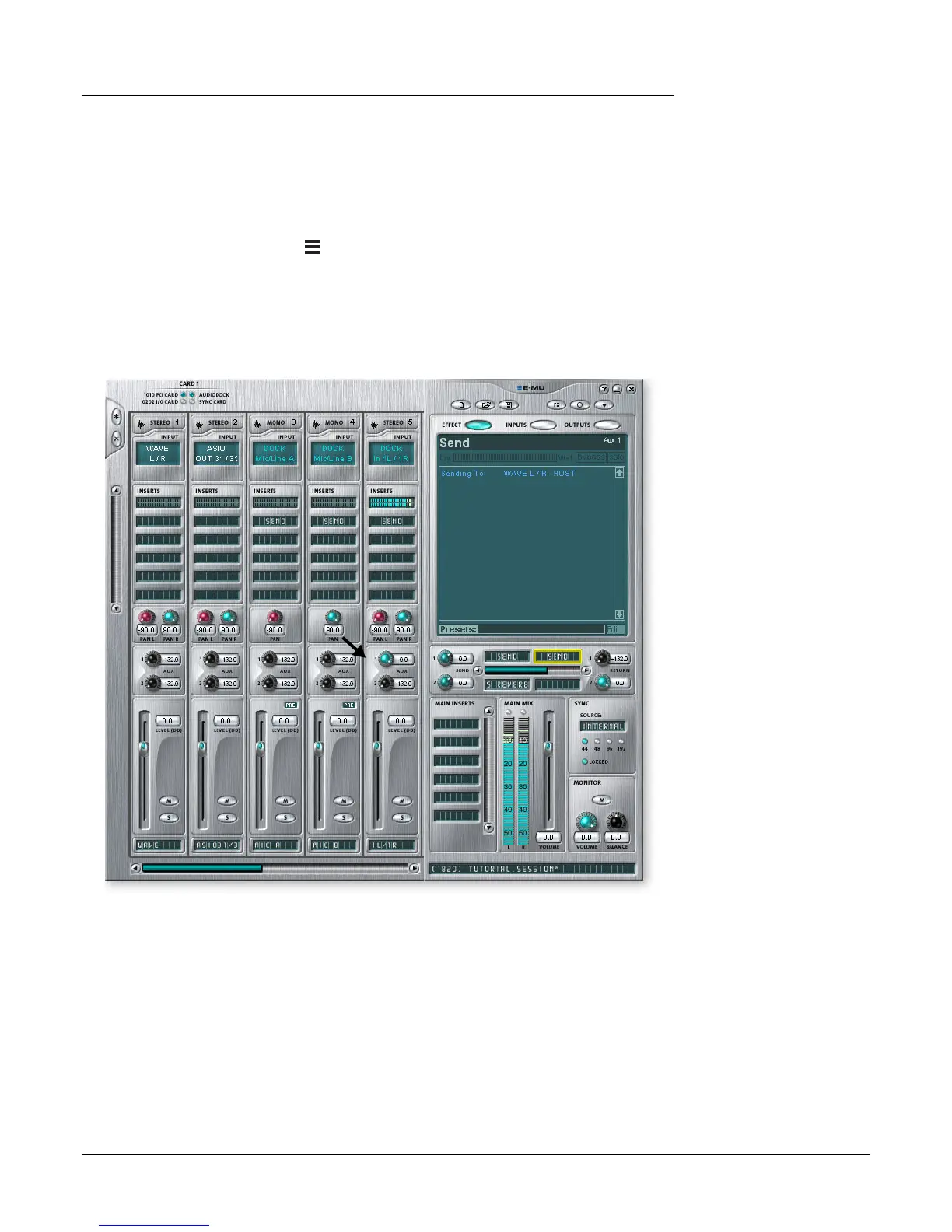 4. Turn up the Aux Send 1 Amount on the input channel you are using. In the