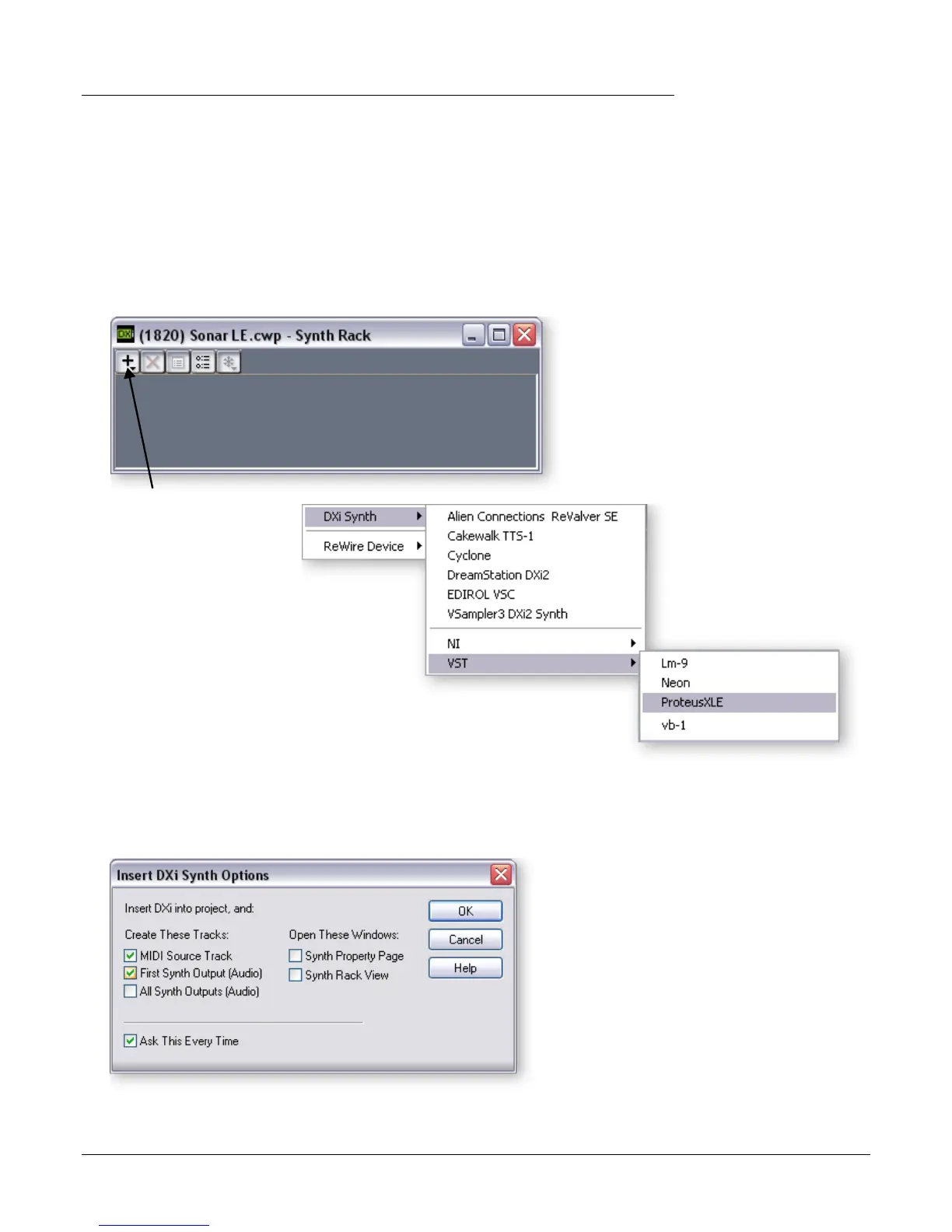 1. From the Sonar LE Project window, select Synth Rack from the View menu. The