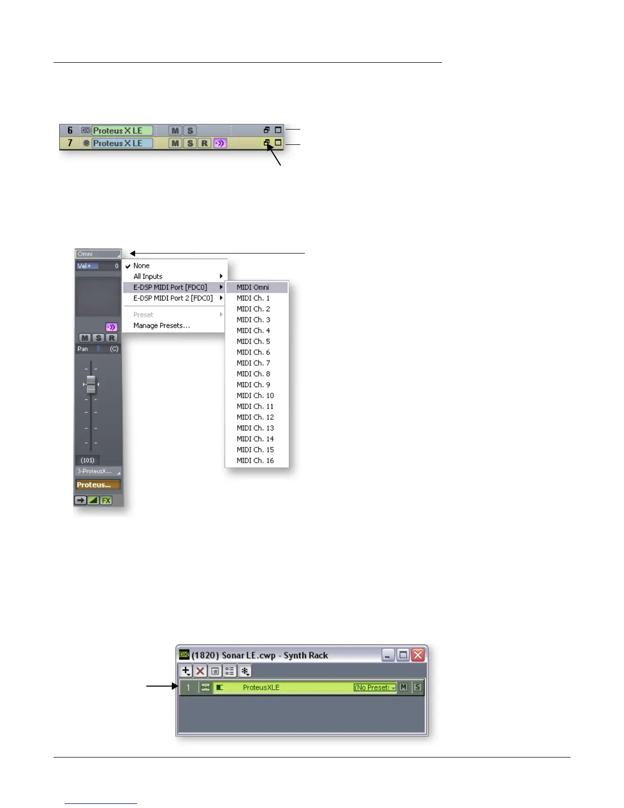 “MIDI Omni” allows Proteus X LE to receive all 16 MIDI channels. (Proteus X LE is