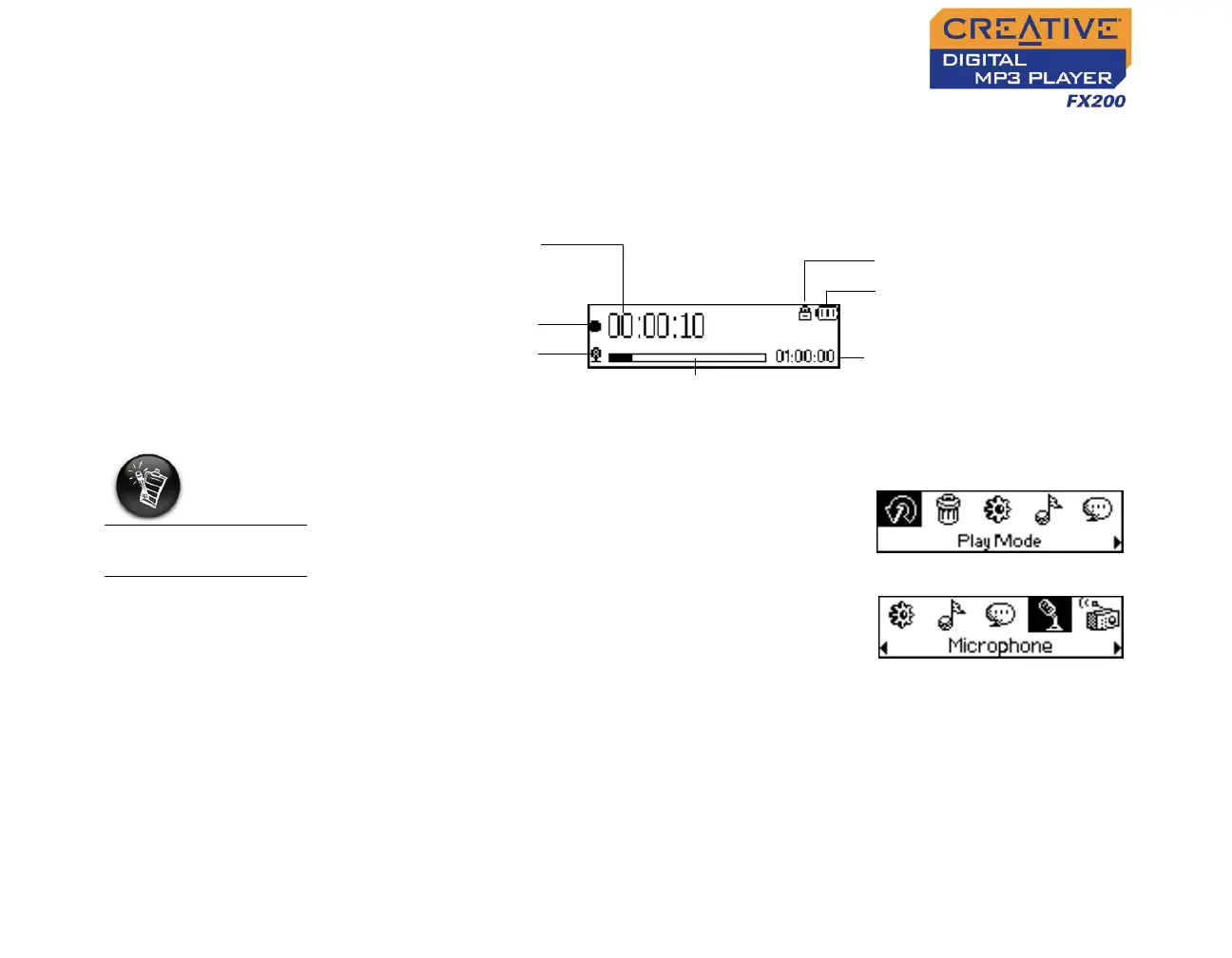 Also, the microphone icon appears in the bottom-left corner of the LCD