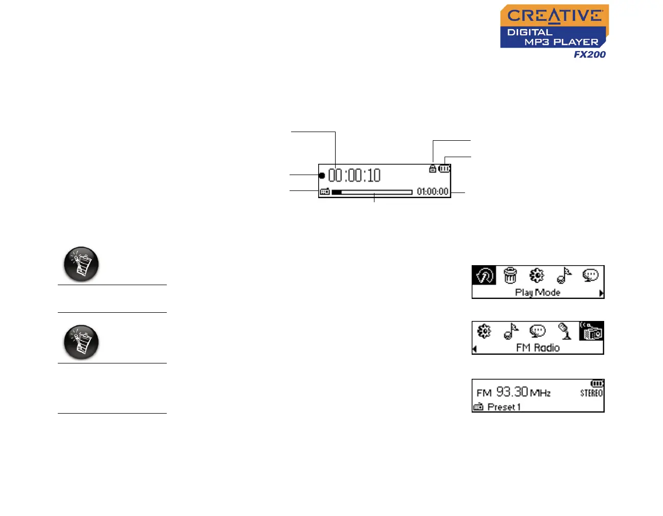 recording time. Also, the FM Radio icon appears in the bottom-left corner of