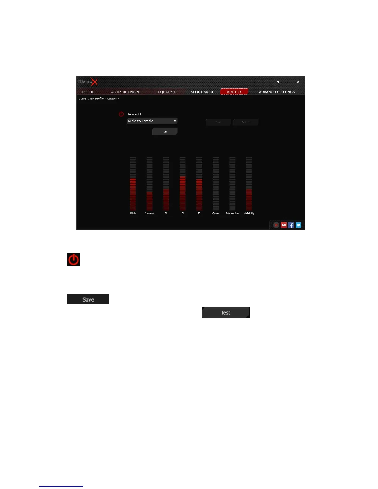 Voice FX setting by dragging the sliders up or down to the desired level.