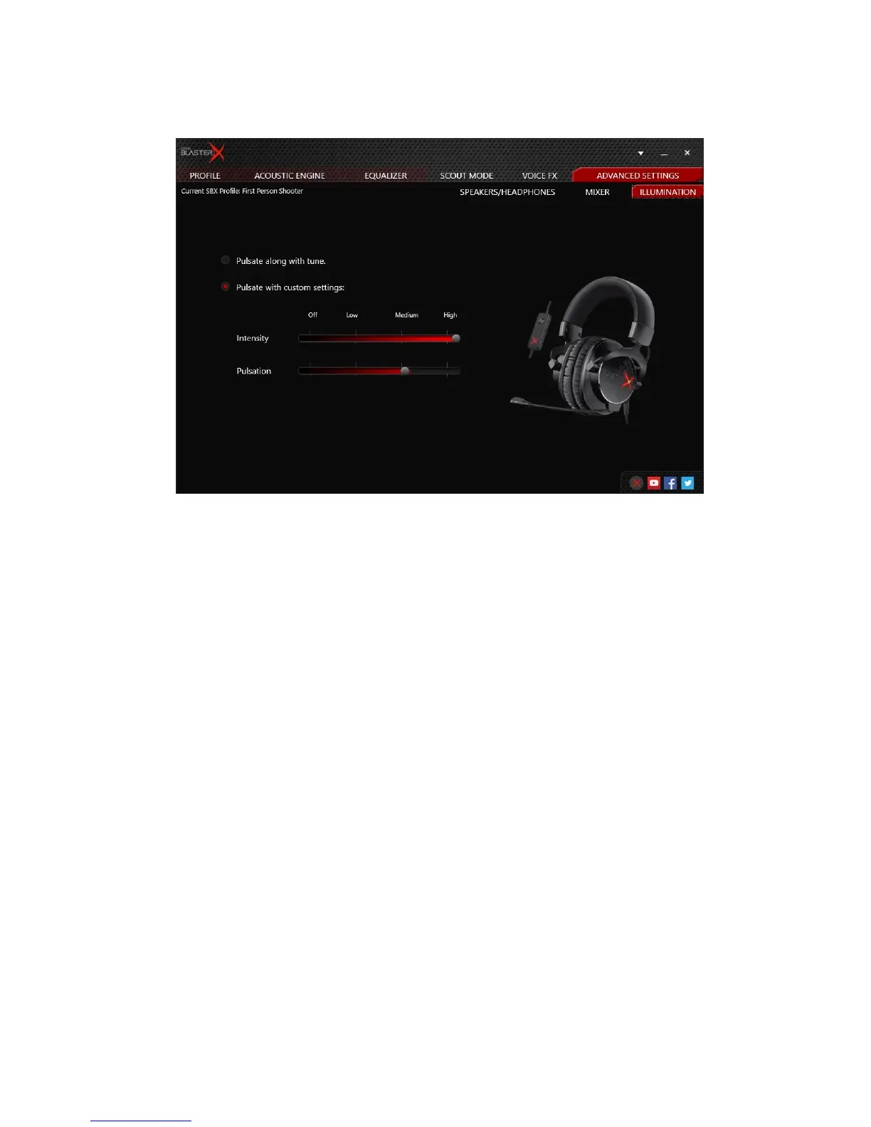 Adjust the intensity and pulsation effect of the "X" logo on your Sound BlasterX H7 earcups.