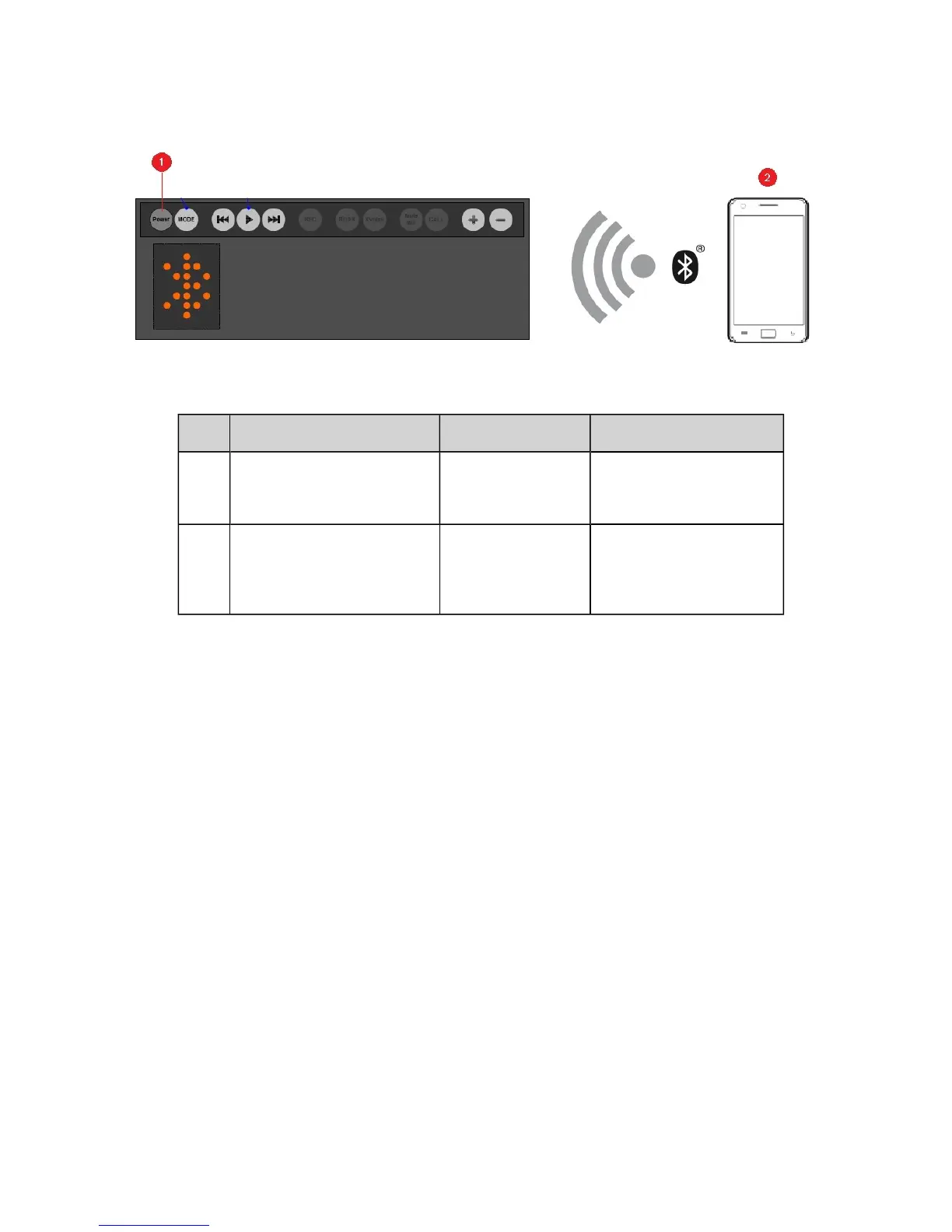 Bluetooth mode Ready to stream music.