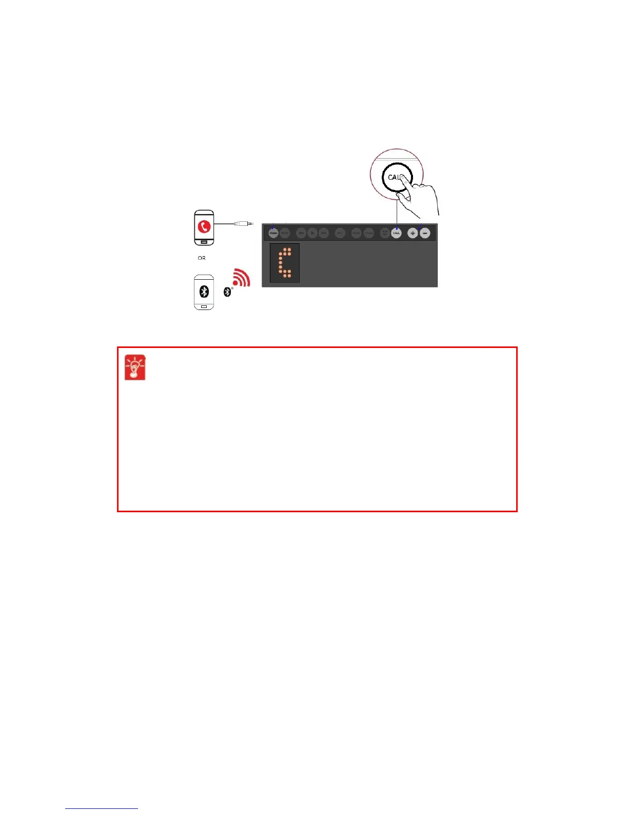 Press the Call button once to answer the call. Press again to end a call. The music will resume after the