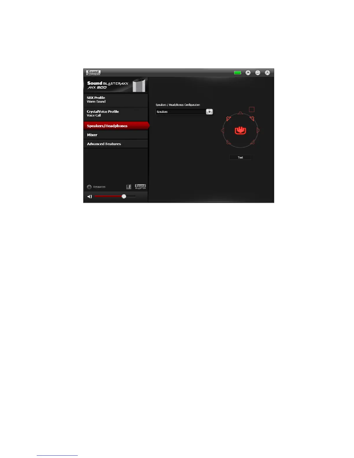 2. Click Test to hear a sample audio clip played back based on the settings.