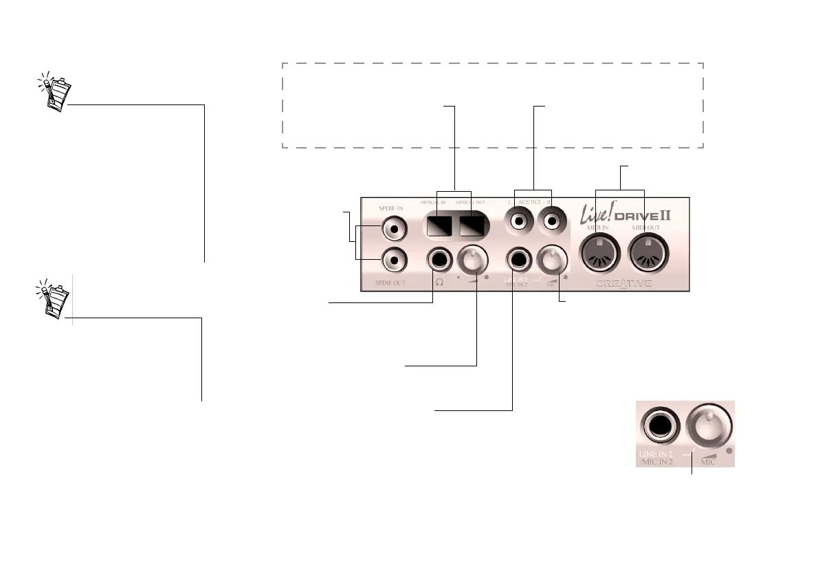 (These two sets of connectors and jacks are available only on Live! Drive II.)