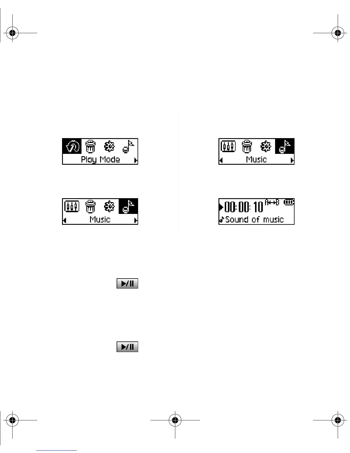 如果您的播放機中沒有曲目,則播放機的螢幕上將出現 " 無音樂"或"無錄音"的訊
