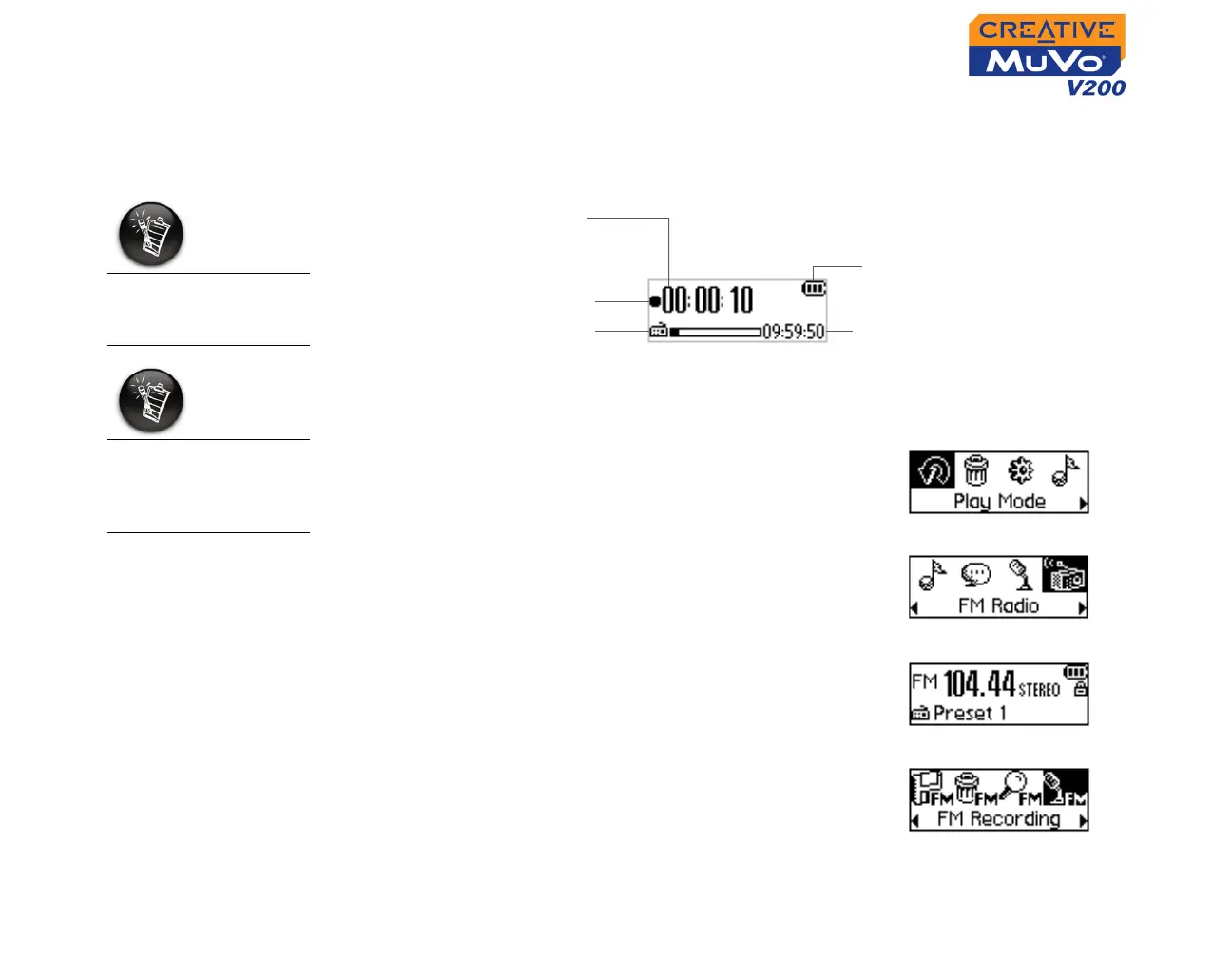 Also the FM Radio icon appears in the bottom-left corner of the LCD screen.
