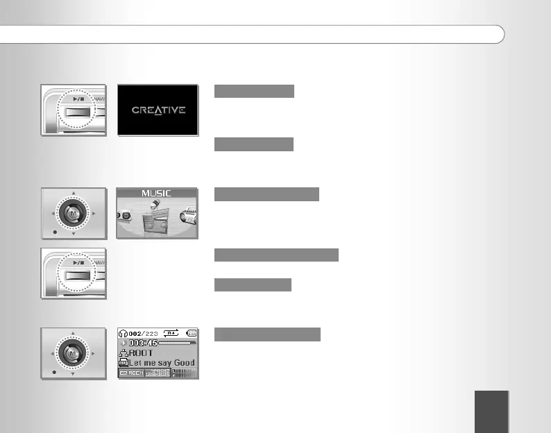 - プレーヤーの電源が入り、CREATIVE ロゴ(またはスクリーンセーバー)が画面に