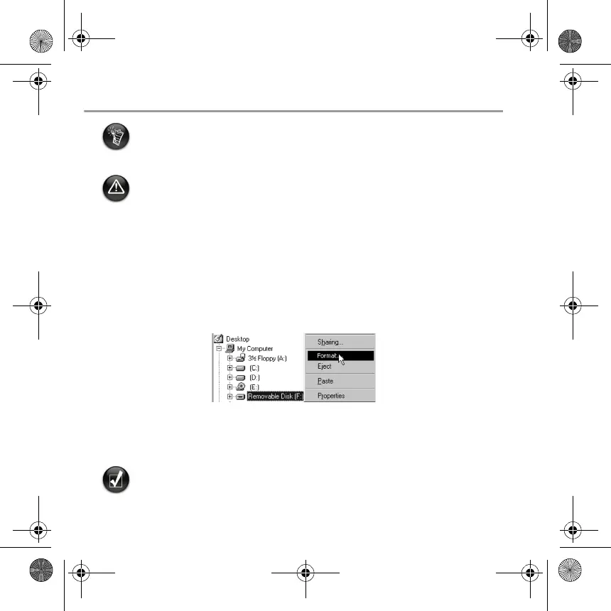 • Benutzer unter Windows 98 SE müssen vor dem Formatieren des Players die