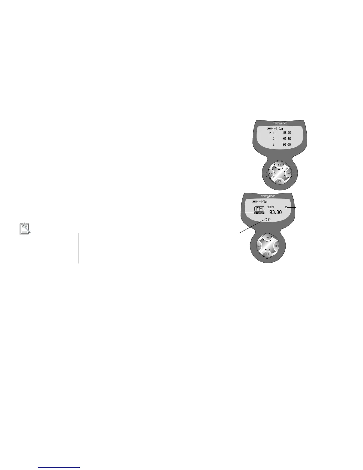 1. To go to FM Radio menu, press the Play button