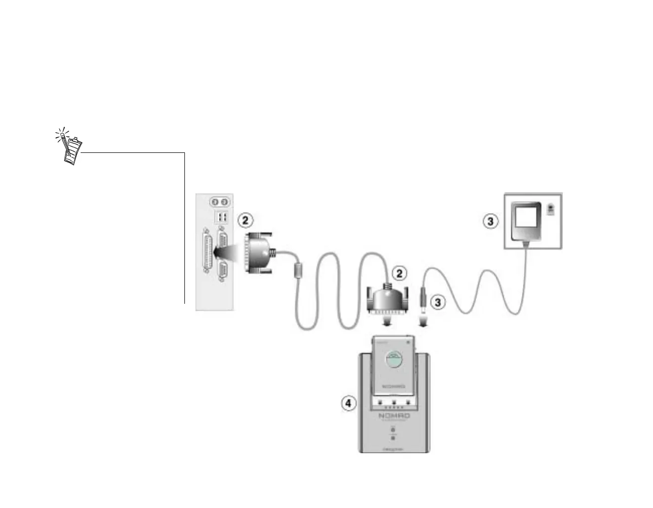 2. Connect the parallel cable to the parallel port on the PC and the docking station.