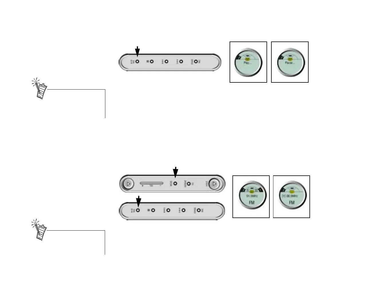 3. Press and hold either the Forward or Reverse button to fast-scan forward or reverse for stations.