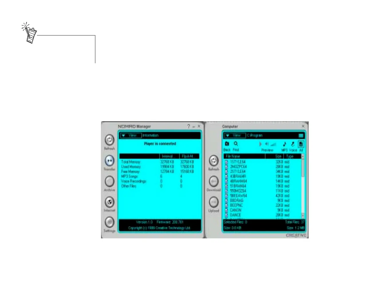 1. On the Nomad Manager window, click the Transfer button. The Computer window is displayed next
