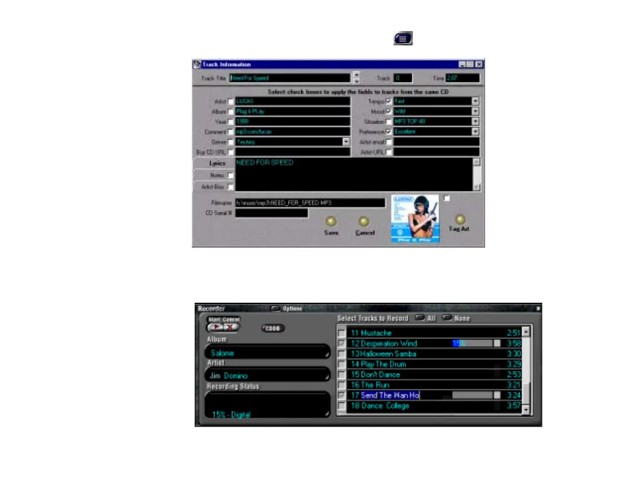 Track Info The Track Info button on the Digital Audio Center opens the Track Info screen.