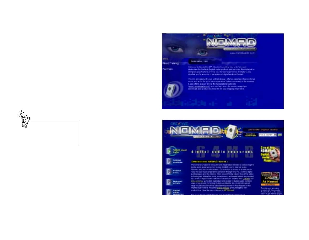 NOMAD includes a CD, CONTENT CD, that offers sample MP3 files for downloading, manipulating,
