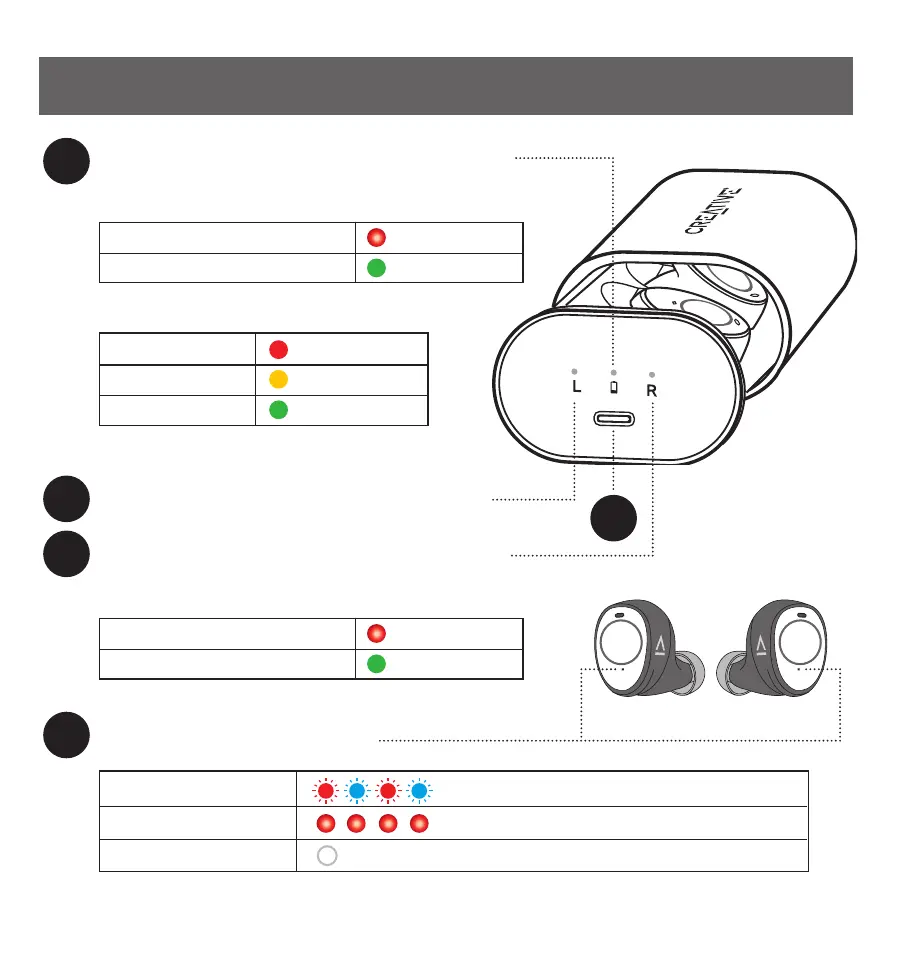 Creative Outlier Pro - Product Overview; Charging Case Battery Status; Earbud Charging Indicators; Earbuds LED Indicators