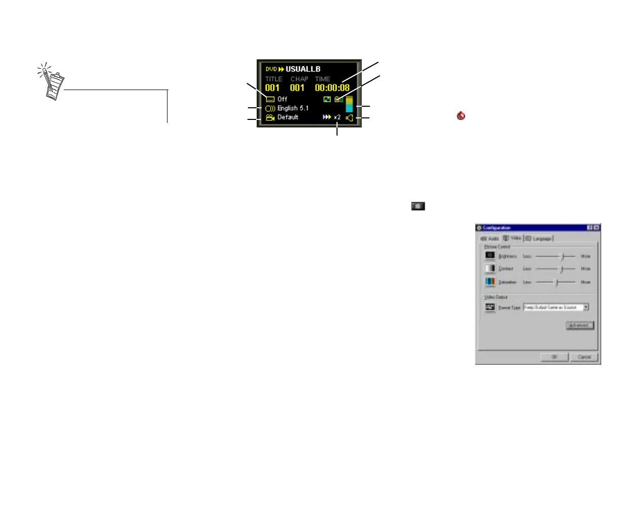 Status Display Information that relates to the current DVD title is given in the Status Display.