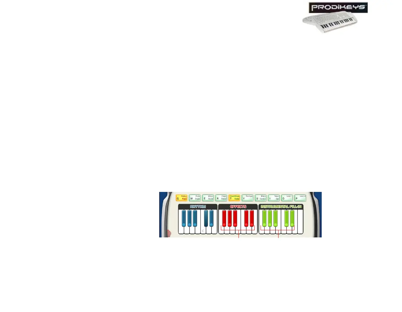 keyboard that correspond to the red keys and green keys in your Creative Prodikeys