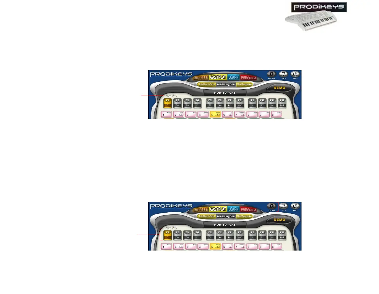 the Creative Prodikeys software, or press the function keys (F1 to F12) on your
