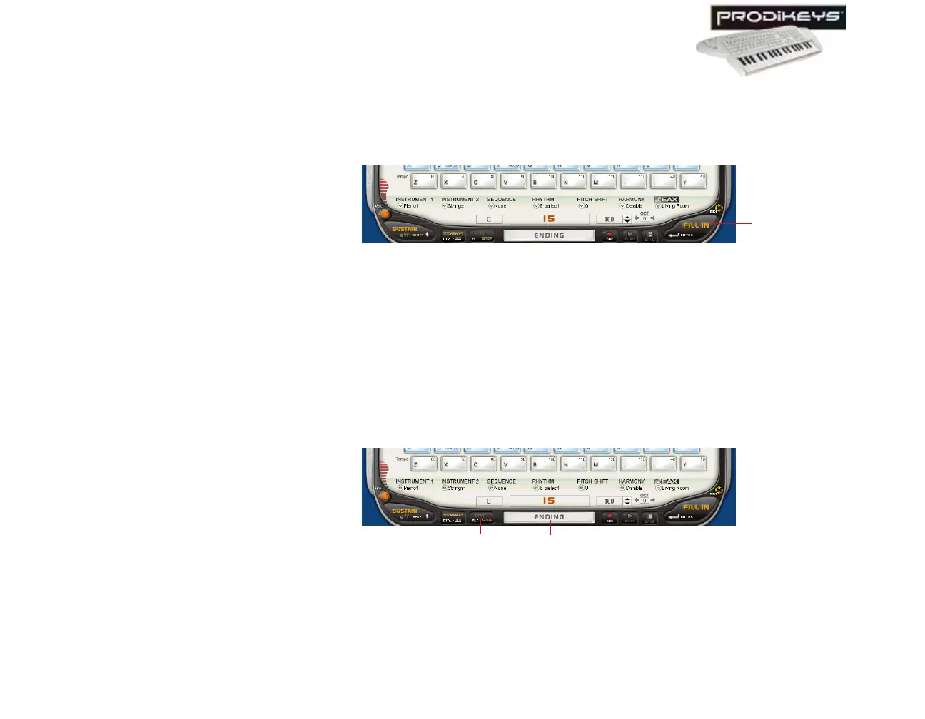 To add rhythm fill-ins: Click the Fill In button in the Creative Prodikeys