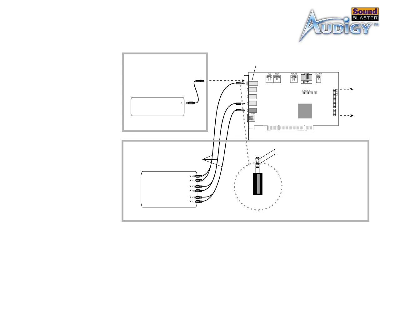 Figure 1-8: Connecting external consumer devices to the Sound Blaster Audigy card.