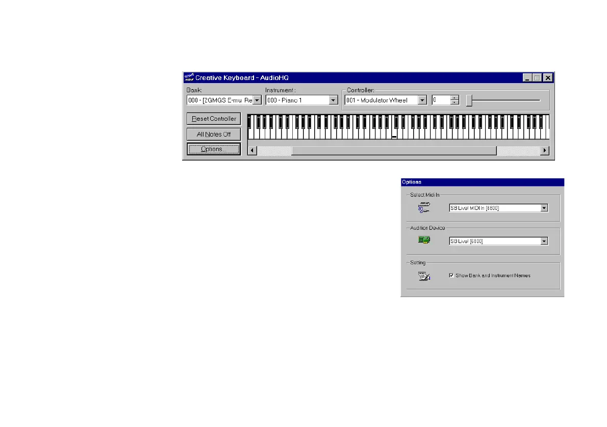 1. In Creative Keyboard, click the bank and the instrument you want.