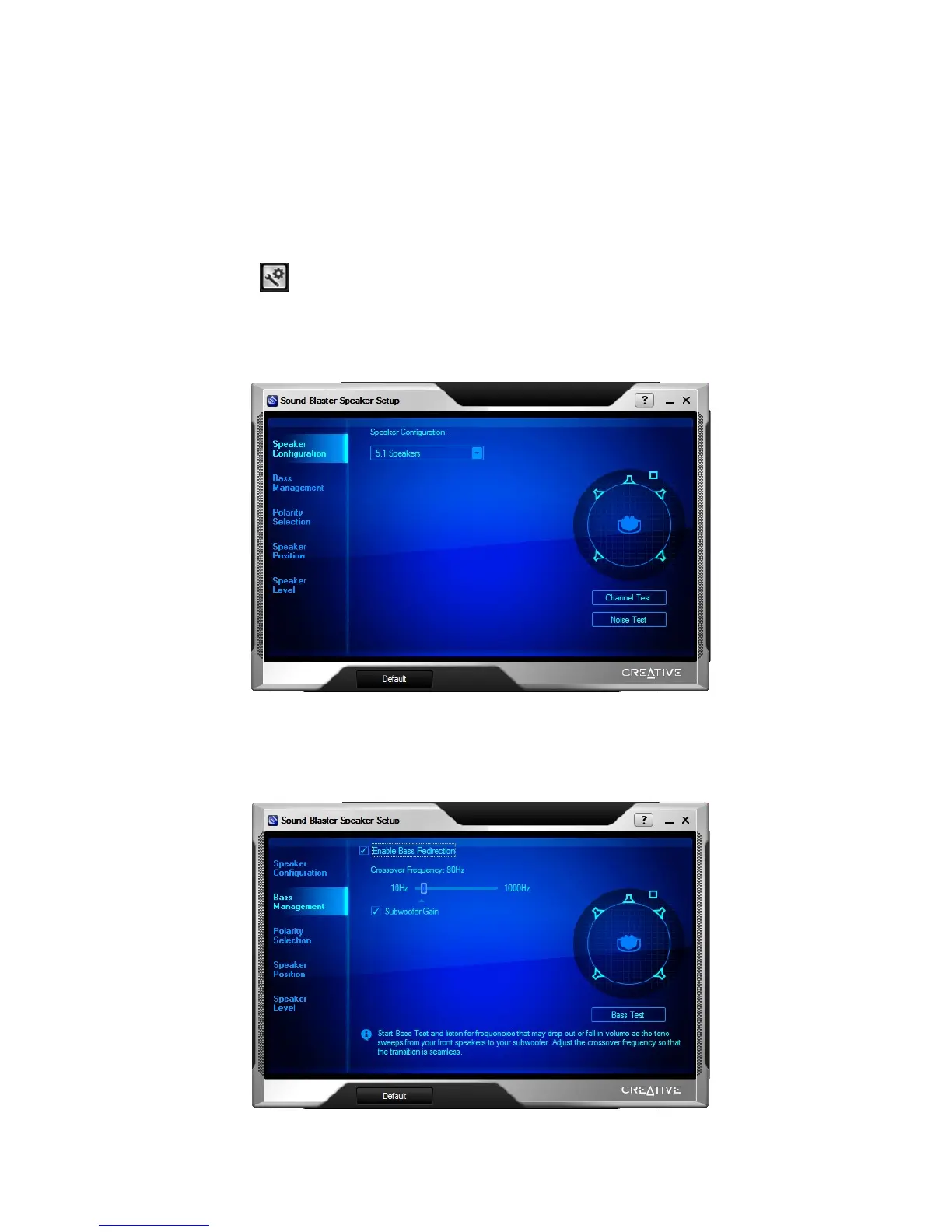 the Sound Blaster SpeakerSetup application. Simply launch this application from the Sound Blaster Z-