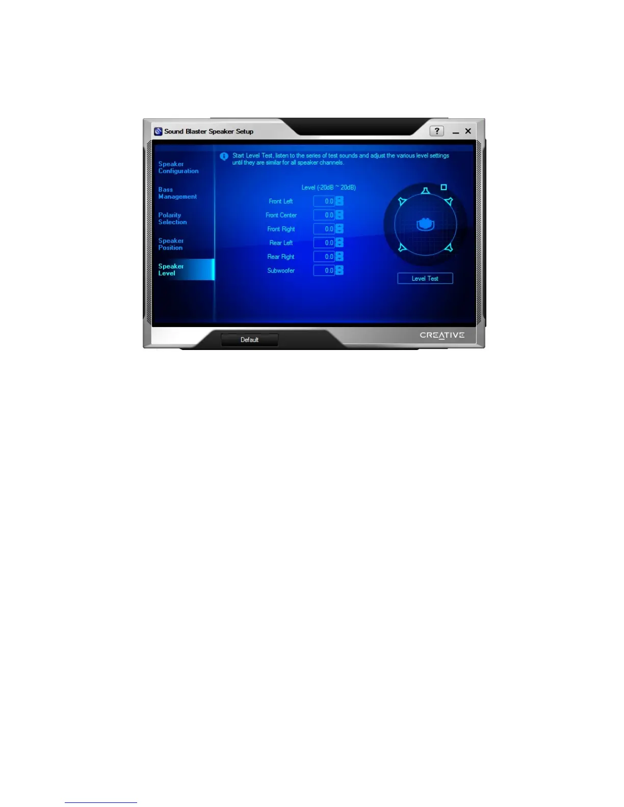 Click the Level Test button and adjust the speaker level for each speaker accordingly.